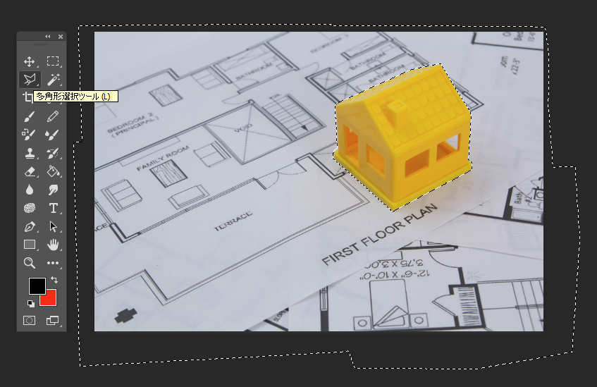 そんなときは多角形選択ツールを起動し、模型の外形に沿って領域を選択していきましょう。